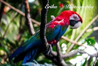 “Scarlett Red Macaw sitting on a tree branch at the Bronx Zoo Bird Exhibit“